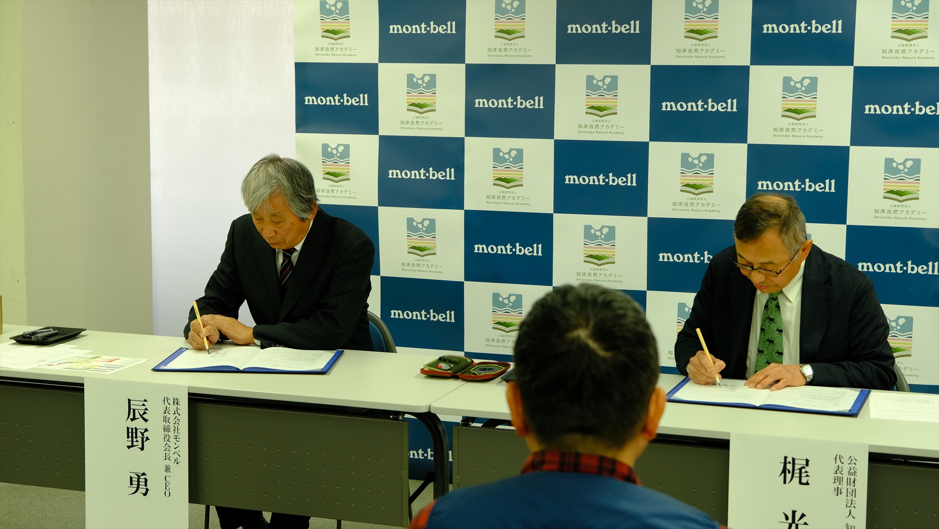 2025年12月26日、公益財団法人知床自然アカデミー(代表理事 梶光一)と株式会社モンベル(本社大阪 代表取締役会長兼CEO辰野勇)は、野生動物の適正な保護管理を担う人材の育成・教育を推進し、自然環境及び生物多様性の保全に貢献することを目的として包括連携協定を締結いたしました。今後この目的のため、同社と様々な面で協力して参ります。ご存じの通り、株式会社モンベルはアウトドア用品、特に登山に関連した革新的機能をもつ商品の企画・製造・販売を通じて社会に貢献しています。特に同社の「7つのミッション」ではその冒頭に「自然環境保全意識の醸成」を掲げ、広報やイベント、商品を通じてそれらに寄与する活動を推進してきました。当財団は、知床ネイチャーキャンパスや各種オンライン講座を通じて、野生生物保護管理教育と専門的人材育成を推進してきました。